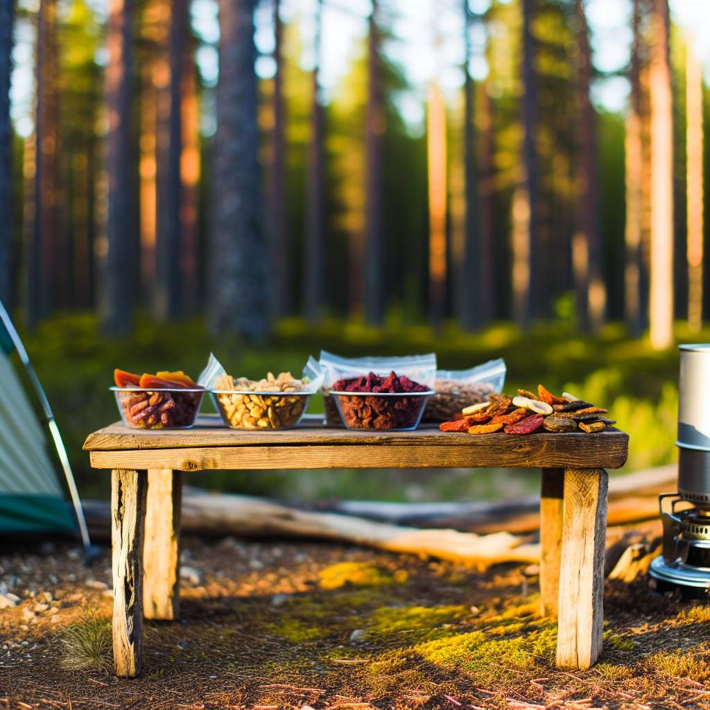 Les ingrédients comme les noix, les fruits secs, les pâtes déshydratées et le riz précuit sont légers et compacts. Ils se conservent bien et fournissent une bonne base pour les repas en bivouac.